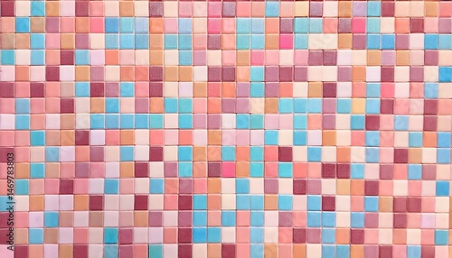 © background , Fototapeta premium Pastel Pink, Blue, and Peach Mosaic Tile Wall Texture
