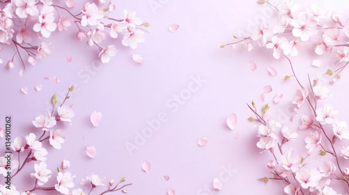 Fototapeta premium Pastel pink cherry blossoms, floral art, spring background, digital art
