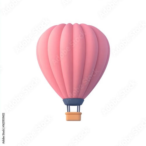 © Rungtiwa, Naklejka premium Pastel Pink 3D Cartoon Hot Air Balloon on White