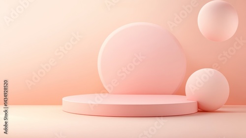 Fototapeta premium Pastel pink geometric display podiums and spheres.