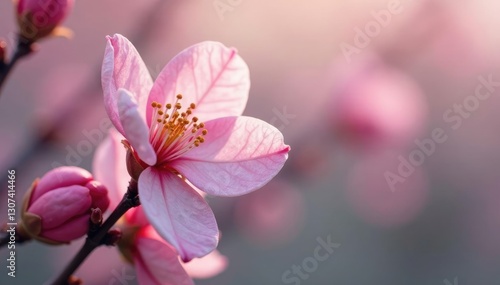 © Jameo, Fototapeta premium Pastel pink petals unfurl on a delicate branch, spring flowers, soothing, soft focus