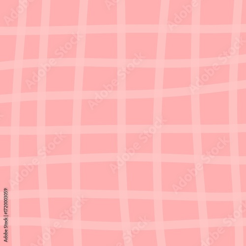 © Nary, Fototapeta premium Pastel pink plaid pattern with vertical and horizontal lines in lighter pink, slightly wavy, forming squares.