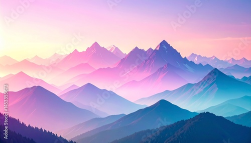 © Rendy Dastian, Fototapeta premium Pastel Pink Purple Mountain Range at Sunset