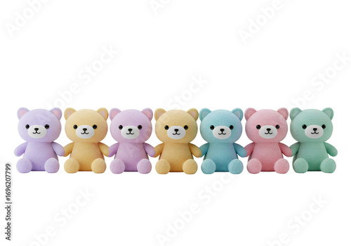 © Jazi, Fototapeta premium Pastel Plush Bear Set: Six Soft & Cuddly Friends on white background
