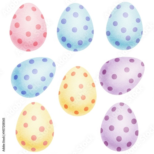 © AkshataHay, Fototapeta premium Pastel Polka Dot Easter Eggs Illustration