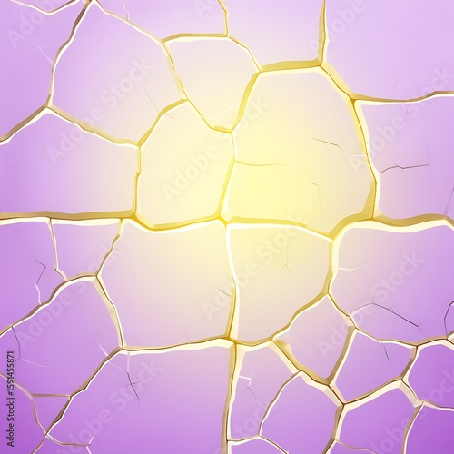 © Visionary Vistas, Obraz premium Pastel purple and light yellow cracked surface with centered gradient void .