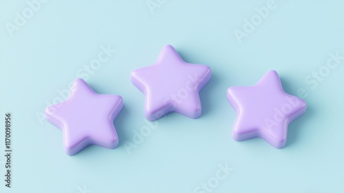 © Nattapol, Obraz premium Pastel purple star icons on light blue background digital art