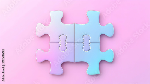 © Home Studio, Obraz premium Pastel puzzle pieces joined on pink background. Teamwork concept