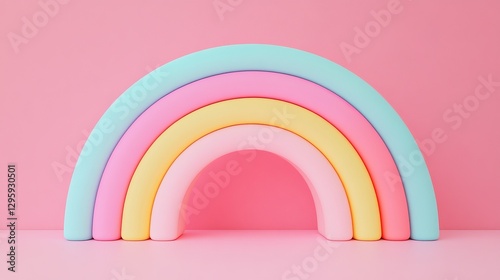 Fototapeta premium Pastel Rainbow Arch 3D Render, Pink Background, Minimalist Design, Abstract...