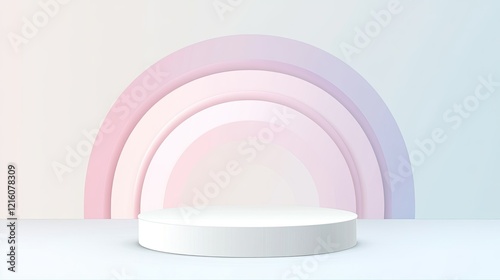 © Magnetix Art, Obraz premium Pastel Rainbow Background with White Cylindrical Podium for Product Display