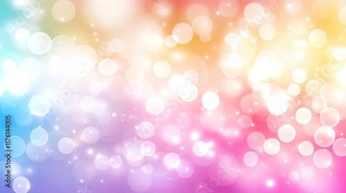 Fototapeta premium Pastel rainbow bokeh background with glowing lights and sparkles.