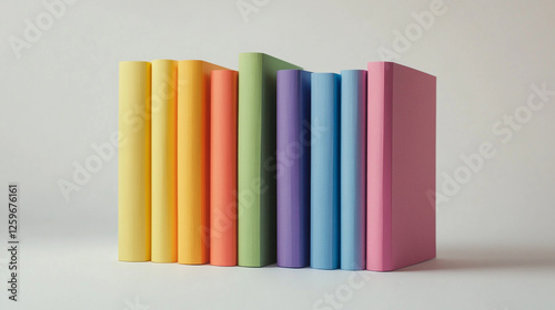 © Tahsin, Naklejka premium Pastel Rainbow Bookshelf Colorful Books Stacked Literature row happy study pages cover colors design