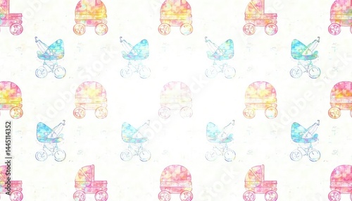 Fototapeta premium Pastel rainbow colored strollers, repeating pattern on white, repeat,...