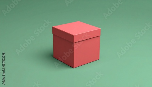 © SinemArt, Obraz premium Pastel red kraft box mockup on green background.