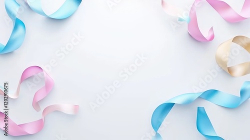 © matoya, Fototapeta premium Pastel ribbons frame, white background, party invitation design