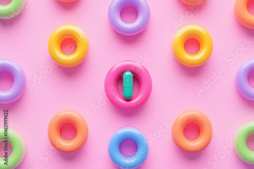 © Afiqah Artwork, Fototapeta premium Pastel Rings Encircling a Capsule: Playful Minimalist Design
