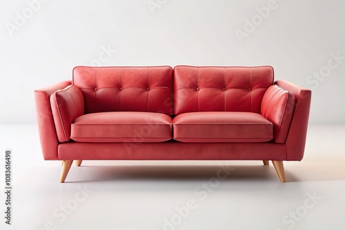 © chaowalit, Fototapeta premium Pastel Ruby Red Loveseat, Minimalist AI Photography