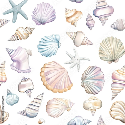 Obraz premium Pastel Sea Shells Seamless Pattern Texture
