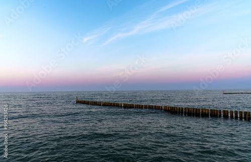 Obraz premium Pastel Sky Over the Baltic at Sunset in Kolobrzeg