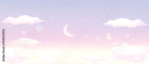 © Dinda, Fototapeta premium Pastel sky with clouds and moon