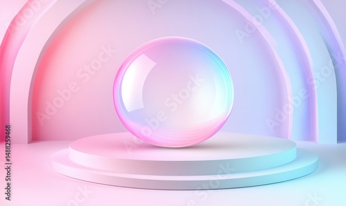 © Azril, Obraz premium Pastel sphere on podium, arched background, product display