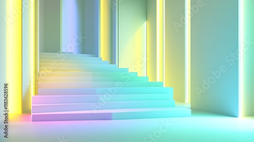 Fototapeta premium Pastel Staircase Ascending in a Luminous Room