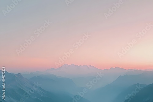 Fototapeta premium Pastel sunrise over misty mountain range, creating a serene and tranquil...