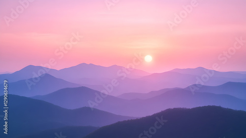 Obraz premium pastel sunset over a mountain range, with soft purple, pink, and peach colors...