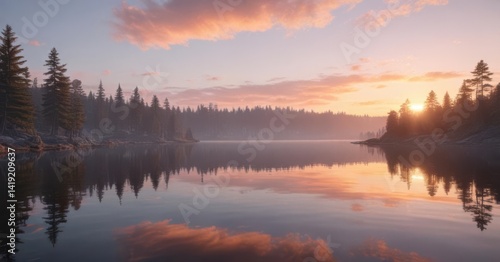Fototapeta premium Pastel sunset over glassy lake, tranquil scene , sunset, outdoor