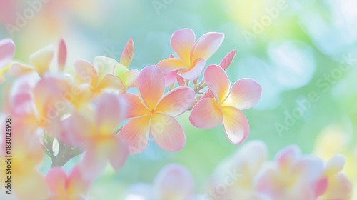 Fototapeta premium Pastel tropical flowers in soft focus natural background