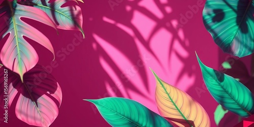 Fototapeta premium Pastel tropical leaves, duotone backlight shadow, abstract design, tone,...