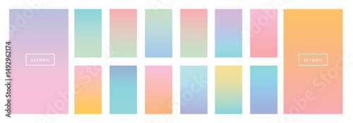 Fototapeta premium Pastel UI mockup template with colorful gradient screens for mobile app...
