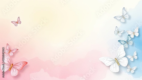 Fototapeta premium Pastel Watercolor Butterflies Background Spring Nature Soft Colors Feminine...