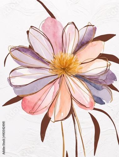 © SecretCanvas, Naklejka premium pastel watercolor cosmos flowers painting delicate botanical design suitable for greeting cards and book covers premium illustration wallpaper background