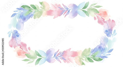 © Phung, Fototapeta premium Pastel Watercolor Floral Wreath Frame. AI Generated