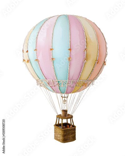Fototapeta premium Pastel Watercolor Hot Air Balloon Illustration Vintage Style Romantic Air Travel