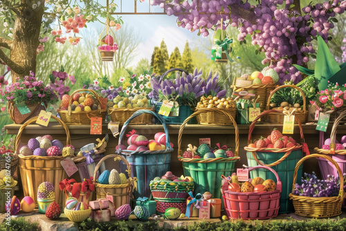 © spyrakot, Fototapeta premium Pastoral Easter Basket Showcase