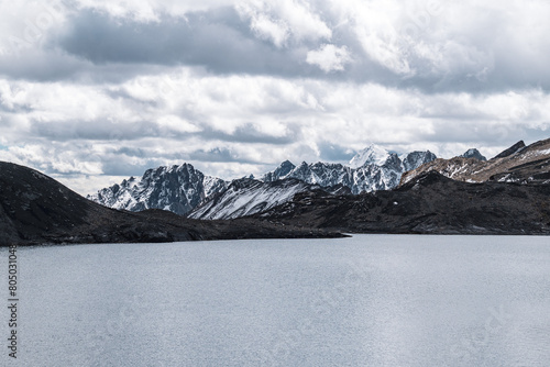 © Hannes, Fototapeta premium pastoruri glacier landscape with a laguna in snow covered andes in the national park Huascarán