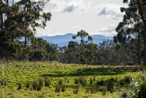 © Phoebe, Obraz premium pasture and grasses on a regenerative farm. native plants storing carbon