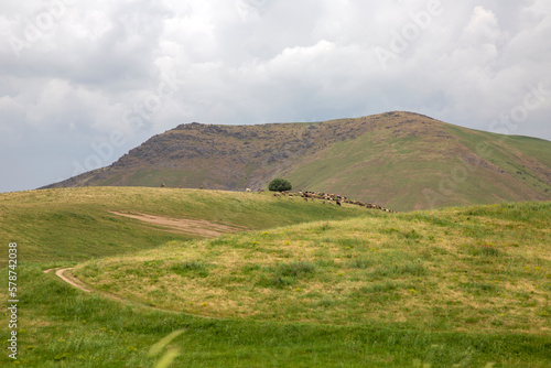 © oybekostanov, Obraz premium Pastures, mountains and plains