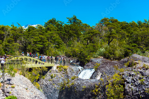 Fototapeta premium PATAGONIA, CHILE - JANUARY 4, 2018: Waterfall in national park Vicente Perez...