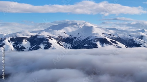© bydronevideos, Fototapeta premium Patagonia Time Lapse In El Calafate Santa Cruz Argentina. Breathtaking Aerial View Of Time Lapse Drone Footage. Nature Travel Destinations Snow Covered Forest Trees. Nature Sky Patagonia Aerial View.