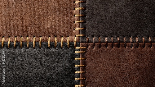 © Momin Photo Gallery, Fototapeta premium Patchwork leather and fabric texture with gold stitching