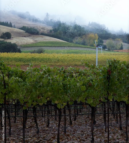 © Heidi Patricola, Naklejka premium patchwork of colors across the autumn vineyard