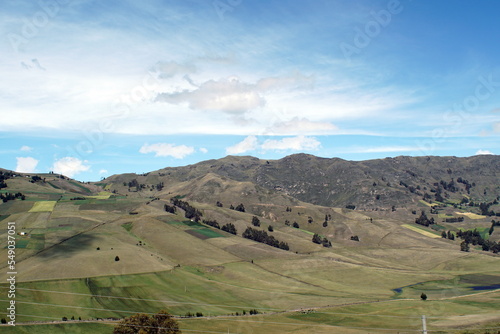 © Angela, Fototapeta premium Patchwork of farm fields on the slope of a mountain near Latacunga, Ecuador
