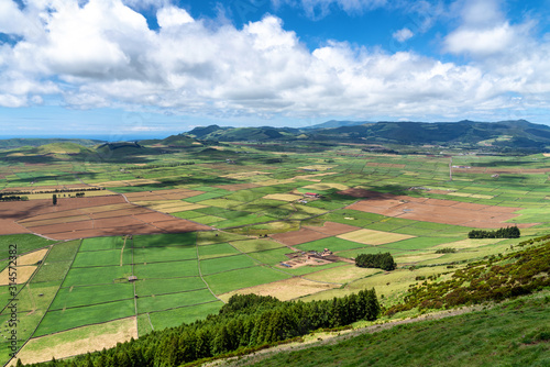 © skostep, Fototapeta premium Patchwork of green farm pastures