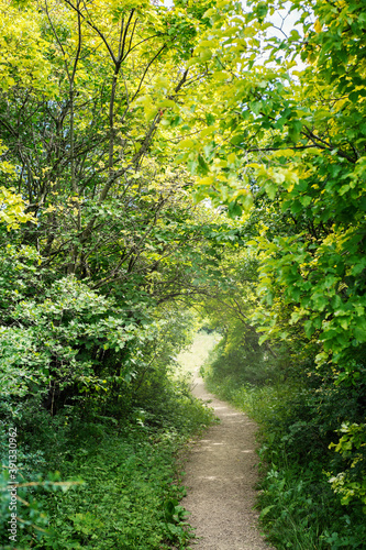 © Vitalii, Fototapeta premium path among green trees in the park, blurred image