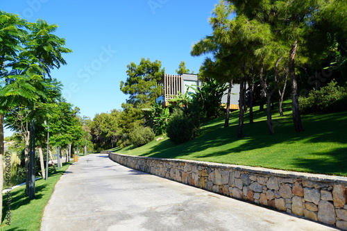 Fototapeta premium Path and juicy green lawn in the wonderful green park