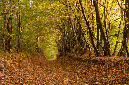 © physyk, Obraz premium Path covered with foliage in autumn forest