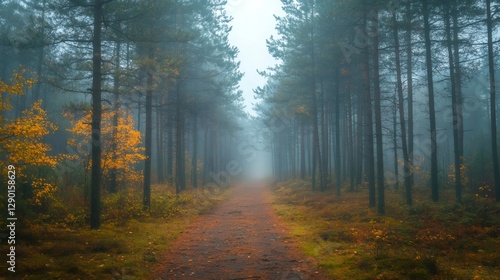 © kardaska, Obraz premium Path disappearing into the fog in an autumn forest